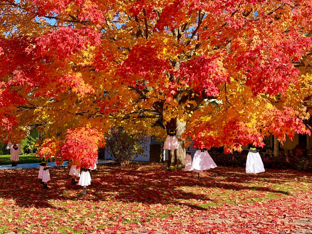Maple ağacım henüz tam kırmızıya dönmedi ama sokağımızda tam anlamıyla, dönen kırmızı yapraklı ağaçlar var.